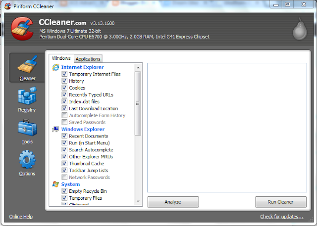 මෙහි අවශ්ය නොවන සියලු දේ තොරා OK click කරන්න.සාමාන්යයෙන් මෙහි සියලු සැකසුම් තොරා තිබුණාට ගැටලුවක් නැත.මෙම ක්රියාවලිය සිදුකිරීම සඳහා සැකසු විශේෂ මෘදුකාංග ද පවතී.CCleaner කියන්නේ ඒ වැනි software එකක්.මේක install කලාට පස්සෙ Clean කරන්න Recycle Bin එක Right Click කරලා එන මෙනු එකෙන් Run CCleaner යන්න තේරීම ප්රමාණවත්.ඒ වගේම Registry Clean කරන්නත්, සොෆ්ට්වෙයා Uninstall කරන්නත් මේක පාවිච්චි කරන්න පුලුවන්.